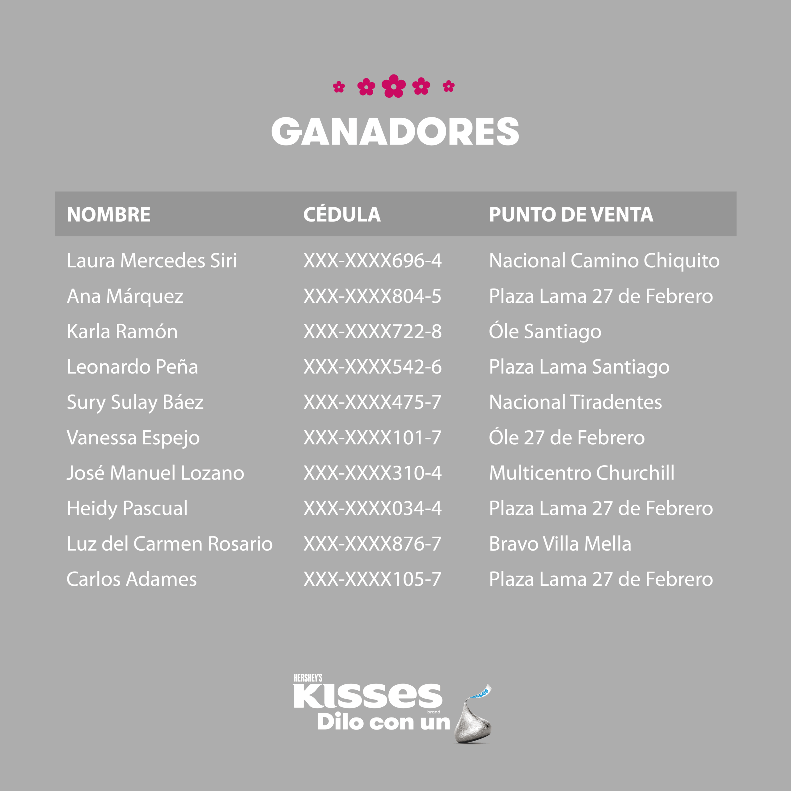 1. LA PROMOCIÓN: Es una promoción de ventas para premiar a los clientes de Hershey’s en República Dominicana. Al comprar RD$700 en productos Hershey’s Kisses, en cualquier establecimiento a nivel nacional que emita factura con NCF/e-NCF, cuyo número pueda ser registrado en la plataforma de participación de la promoción; el cliente participará para ser 1 de los diez (10) ganadores de un (1) kit de la marca que incluye una (1) cámara instantánea, dos (2) cartuchos de fotos para cámara instantánea, diez (10) marcos magnéticos en acrílico y productos de la marca (1) KISSES Milk Chocolate y (1) KISSES Cookies n Creme.